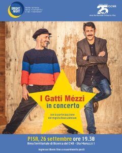 Venerdì 26 settembre 2025 alle ore 19:30 all’Area della ricerca del Cnr di Pisa I Gatti Mézzi in concerto I Gatti Mézzi, Tommaso Novi e Francesco Bottai, con le loro storie vernacolari ricche di ironia e poesia, porteranno sul palco la loro musica, ma anche la nostra città e...